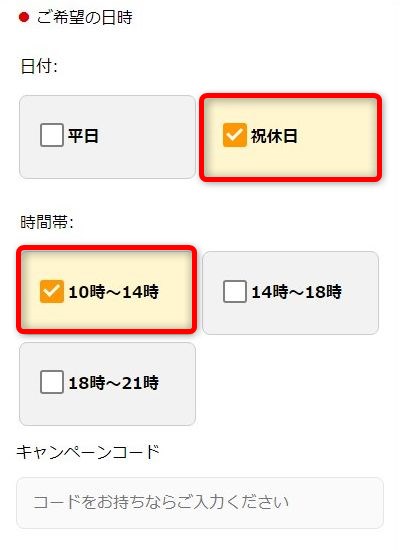 平日か祝休日を選んで、希望する時間帯を3つから選びます。
