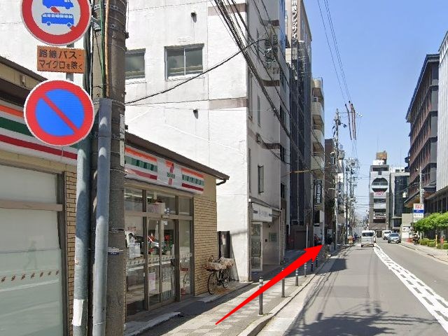1.地下鉄四条駅の3番出口に出たら、目の前にある横断歩道でセブンイレブン側に渡って、まっすぐ進みます。