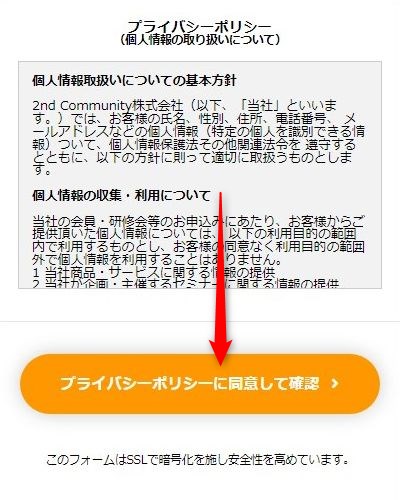 すべての入力が終わったら、【プライバシーポリシーに同意して確認】を選択。