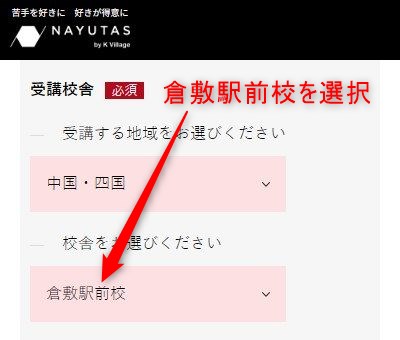 ナユタス倉敷駅前校の無料体験レッスンはこちらから申し込めます。