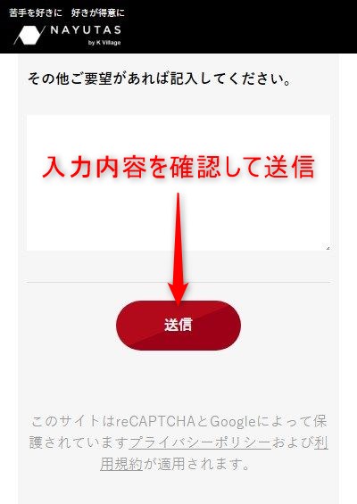 ナユタスの公式サイトに移動して【無料体験はこちら】のボタンを選択すると、無料体験申し込みフォームに移動します。