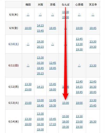 シアーミュージックなんば校で体験レッスンが受けられる時間帯が表示されるので、希望の日時を選択します。
