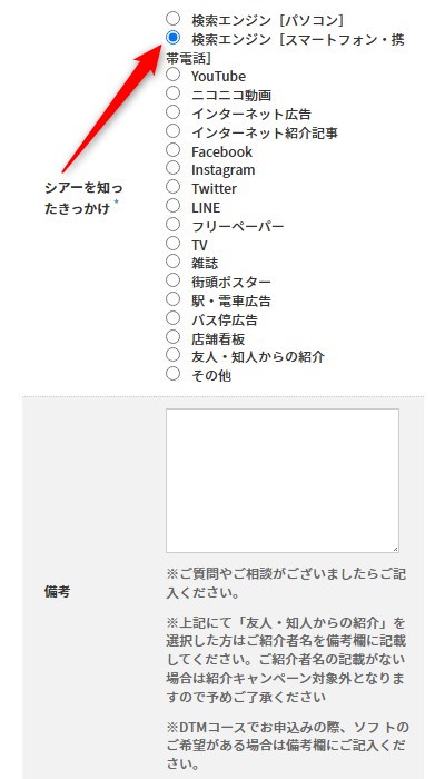DTMコースの無料体験レッスンを申し込む場合でソフトの希望がある場合は備考欄に入力してください。