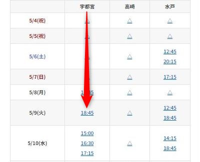 シアーミュージック宇都宮校で体験レッスンが受けられる時間帯が表示されるので、希望の日時を選択します。